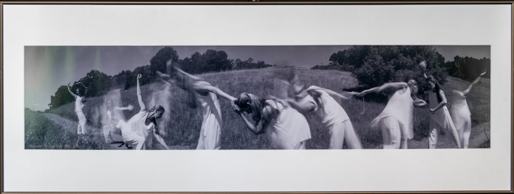 Prepare ye the Way #2. This is a silver gelatin print selenium toned and processed to archival specifications. It is number 2 in an edition of 100. This is part of a series of dance panoramas created to illustrate Biblical themes. In this case, the title refers to Palm Sunday. The image was created with a Roundshot panoramic film camera. The 48x18 inch frame is anodized aluminum (Nielsen Style 15), with a frosted walnut finish. Glazing is non-glare acrylic. The price includes shipping to any location in the USA. If you are willing to pick up the item in Berkeley, California, we can arrange to waive the shipping fee.